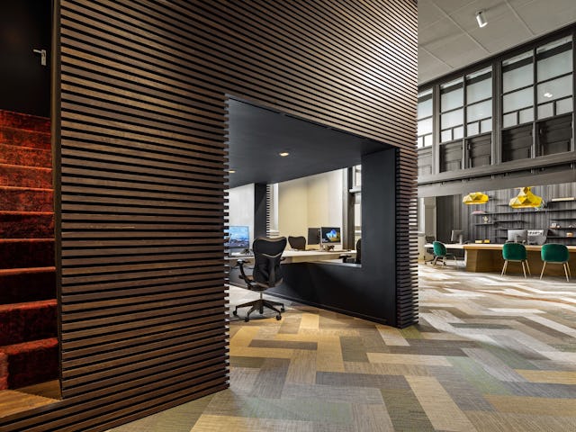 Toelichting Workshop of Wonders - De eerste verdieping van dit laat negentiende-eeuwse schoolgebouw met hoge klaslokalen hebben wij al enkele jaren geleden tot een ruime loftwoning getransformeerd. En toen werd het tijd om voor deze internationale handelsorganisatie het hoofdkantoor op de begane grond een interieur te ontwerpen dat hun avontuurlijk karakter reflecteert en versterkt.