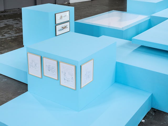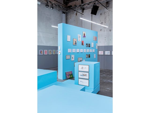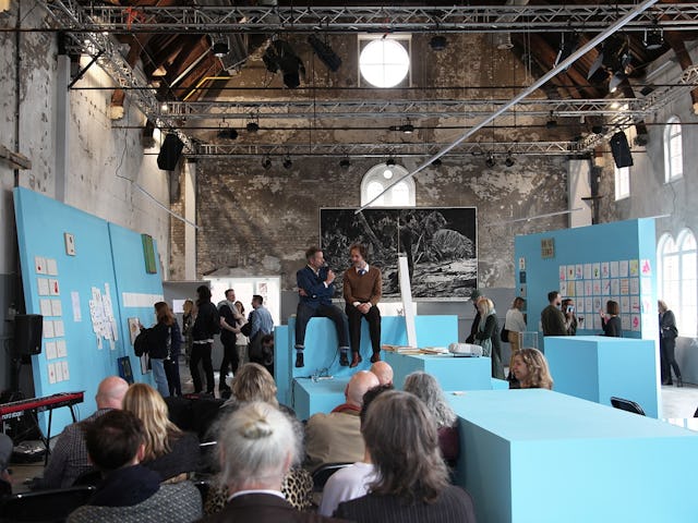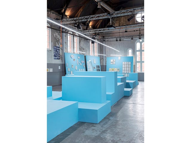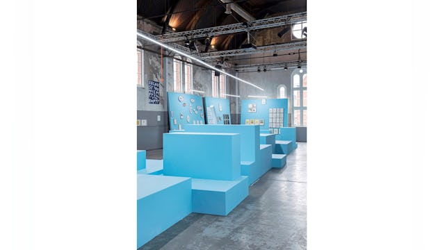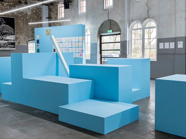 Kern van het ontwerp is een hemelsblauw en foam-kleurig meubel als back-drop voor het hybride programma. Een object opgebouwd uit een zee van sokkels waarop kan worden geëxposeerd, gestaan, gezeten en interviews, performances of workshops worden gehouden. Door de sokkels en de wanden onder een hoek van de bestaande monumentale industriële machinehal te plaatsen behoudt zowel de hal als het toegevoegde interieur haar autonomie en ontstaat tegelijkertijd een gelaagde ruimtelijke beleving.