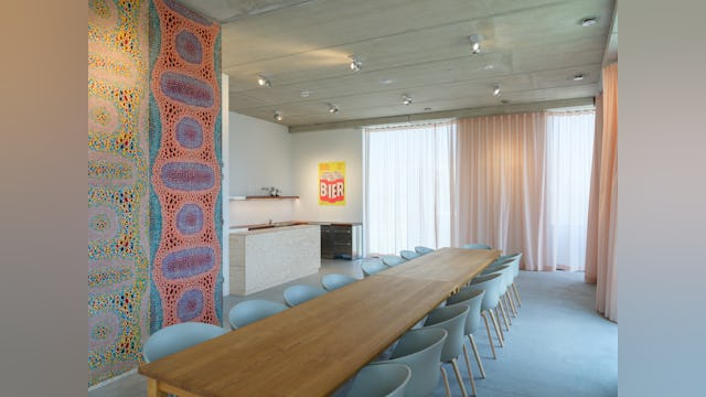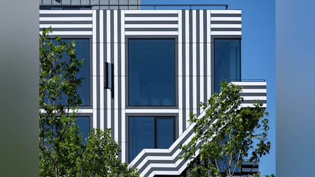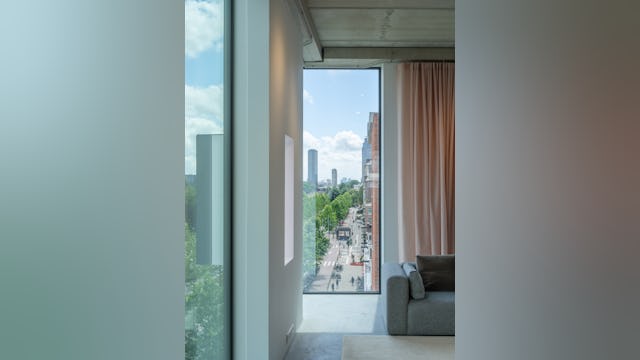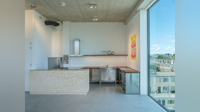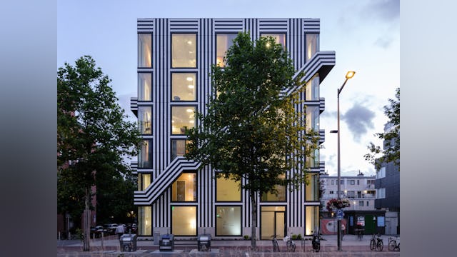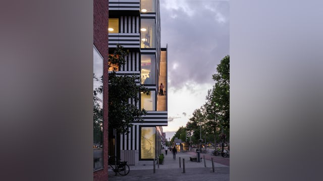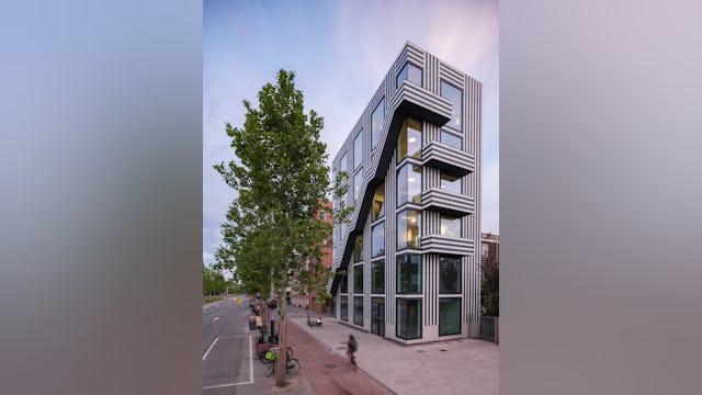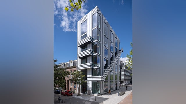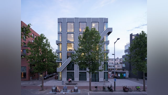 Toelichting door Thonik - Dit is het tweede gebouw dat thonik zelf ontwikkelt voor eigen gebruik. De eerste keer was op een vergeten binnenterrein aan de Weesperzijde in Amsterdam. MVRDV was toen de architect. Het hele binnenterrein transformeerde als gevolg hiervan in een binnenstedelijke oase. Dit keer is het een gebouw aan de Wibautstraat in Amsterdam, de enige grootstedelijke straat in het centrum van de stad. Dit gebouw draagt bij aan de leefbaarheid van de straat, door de passie die eraan af te lezen is en door horeca op de bgg en 1 hoog en door een eventspace op de bovenste verdieping en het dakterras. Het gebouw levert een blauwdruk voor eigen ontwikkeling in de creatieve sector, hetgeen nu nog slechts sporadisch voorkomt. Bij eigen ontwikkeling wordt de stad met passie vormgegeven en wordt de creatieve sector financieel robuuster. Dit heeft een positieve impact op de ontwikkeling van de stad. Daarom is het zo belangrijk dat het gebouw ook echt uitstraalt dat het een eigen ontwikkeling is. Bij thonik betekent dit dat grafisch vormgeving aan de basis ligt van het ontwerp.