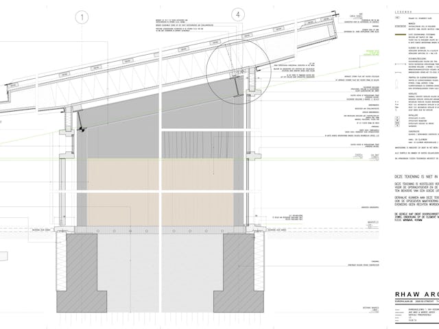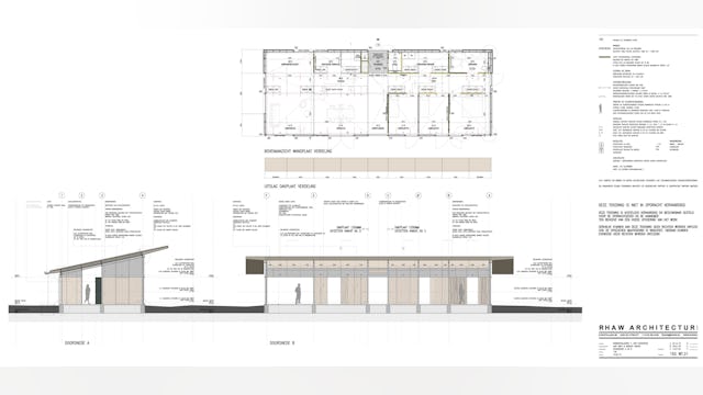 Het huis is opgetrokken vanuit onderhoudsvrije natuurlijke materialen zonder verdere afwerkingslagen. Raamwerk en panelen van verduurzaamd hout. De afdekking strekt zich ver uit over de gevels om het binnen in de zomer koel te houden en de lage zon in de winter naar binnen te halen. Energieneutraal, warmtepomp, vloerverwarming, natuurlijke ventilatie, zonnepanelen en waterberging op eigen grond.