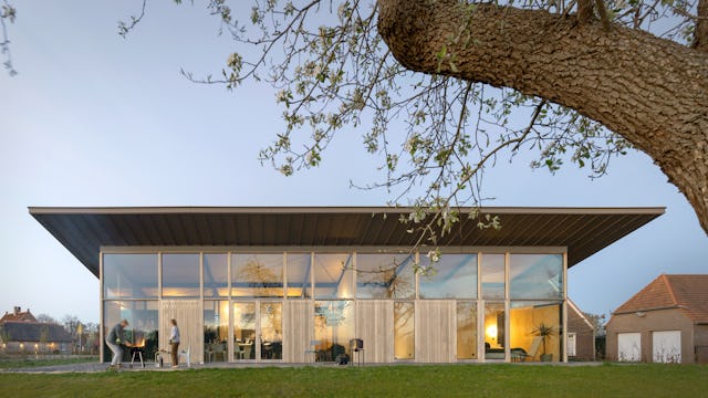 Gebruik makend van een slank stalen frame, houten wandpanelen en een flinterdun raamwerk van verduurzaamd hout bepaald de essentie van het huis. Een eenvoudig en rechthoekig open plan, waarin interieur en exterieur onlosmakelijk zijn verenigd in een luchtig en modulair bouwsysteem met aandacht voor eenvoudige en natuurlijke materialen.