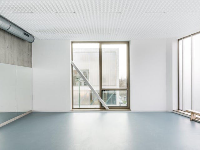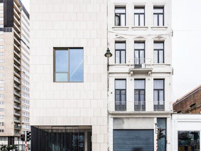De interne entreehal leidt naar het restaurant op de begane grond dat uitkijkt over het nieuwe ‘stadsplein’. Elk gebouw heeft een gevel die wordt gedomineerd door beglazing, die varieert tussen transparant en doorschijnend om het licht binnen te maximaliseren en tegelijkertijd voldoende privacy te behouden voor de mensen binnen.