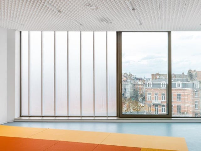 De twee gebouwen met voorzieningen voor de buurt spelen een centrale rol in de ontwikkeling van de Albertpool te Vorst (Brussel). Deze twee gebouwen zijn de toegangspoort tot de wijk. Grote openbare ruimtes, zoals het auditorium en de sporthallen, bevinden zich op de hoeken van de gebouwen. De transparante en doorschijnende gevels op het kruispunt verlevendigen de functies van de gebouwen.