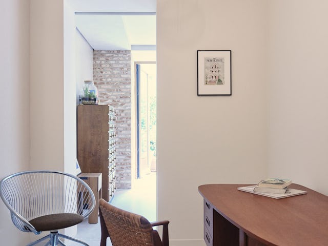 De uitzondering is het prachtige Duitse Medizinschrank uit het interbellum, dat niet zo populair was op marktplaats. Binnen het huis zijn plekken gecreëerd binnen de leefruimten van het huis. Het fijnste plekje van het huis is het betonnen bankje gesitueerd aan de binnentuin. Op deze manier komt het groen in je huis, de kinderen gebruiken het als speelbankje, zowel van buiten als binnen.