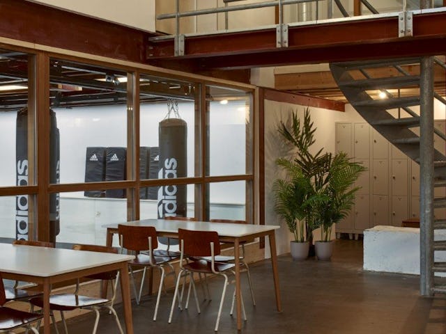 Toelichting Kevin Veenhuizen Architects - De sportschool is gelegen in een betonnen scheepswerf uit 1957, vernoemd naar De Groene Draeck: het zeilschip dat Prinses Beatrix kreeg voor haar 18e verjaardag. Door middel van een staalconstructie tussen het betonnen grid is het gebouw in 1995 opgedeeld in kantoorunits. Om de nieuwe sportschool te huisvesten zijn units samengevoegd en is de staalconstructie volledig aangepast aan de nieuwe gebruiksfunctie.