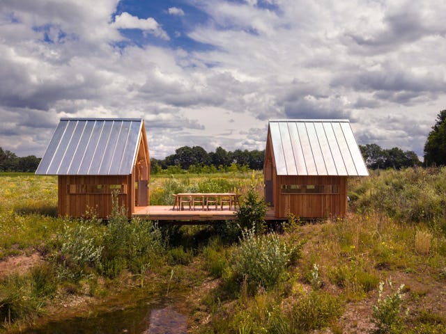 Beide modellen zijn gebouwd van duurzaam larikshout. Binnen is berken multiplex gebruikt voor de hoge kwaliteit en lichte kleur. Horizontale ramen bieden een panoramisch zicht, zonder dat het huis snel opwarmt door direct zonlicht.