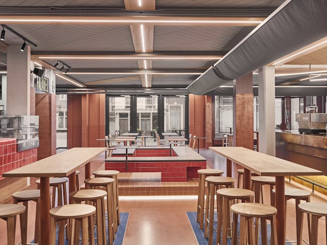 De indoor foodhall verspreidt zich over drie aangrenzende gebouwen en verbindt meerdere verdiepingen in een open openbare ruimte met twaalf verschillende eetstands in verschillende groottes. Voor de basis van het concept heeft Studio Modijefsky zeven elementen gekozen die op typische stedelijke pleinen zijn te vinden zoals oriëntatiepunten, opvallende bestrating, fonteinen, trappen, koopmannen, speeltuinen en standbeelden.