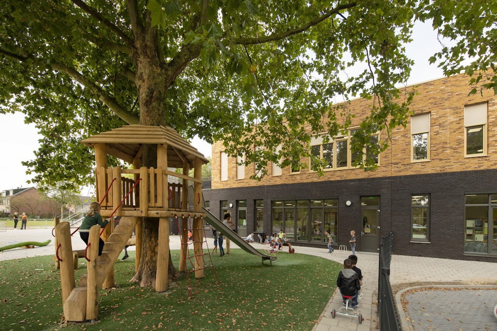 Het open onderwijsconcept komt terug in de opzet van het gebouw. Op de begane grond krijgt de onderbouw les en zijn het kinderdagverblijf en speeltaalhuis geplaatst. LIAG creëerde een grote multifunctionele speelruimte tegenover de grote trap die ook als tribune of voorleesplek gebruikt kan worden. Op de eerste verdieping is de bovenbouw met tegen de gevel aan de basis-instructie-ruimten. Met grote glazen schuifpuien zijn deze verbonden met het middengebied waar de leerpleinen zijn.