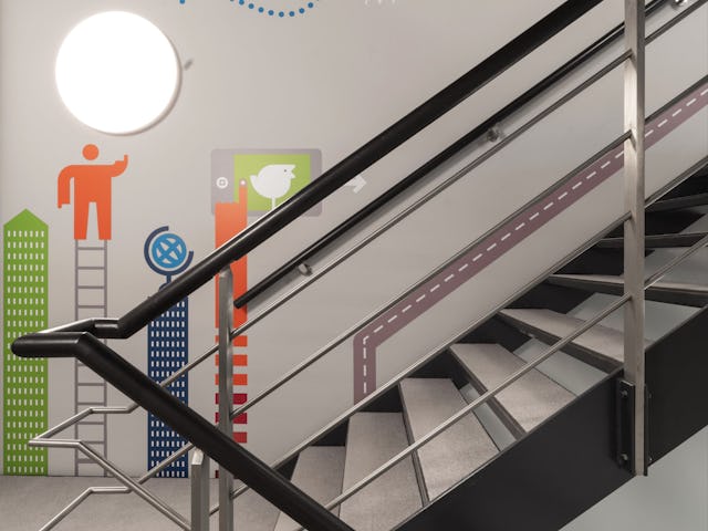 De grafische laag is doorontwikkeld op basis van de global standard van Osborne Clarke. Dit draagt bij aan wayfinding en sense of place. Voor het gender neutrale toilet is aanvullende signage ontworpen.