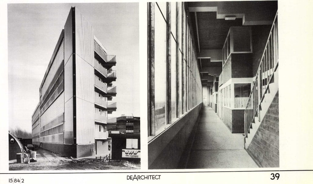 Tegenover dit relatief dure galerij-principe staat de grote mate van rationalisatie van het bouwproces. De travee maat van 5,10 m wordt nergens verstoord of onderbroken. Het gebouw ontwikkelt zich als een trein. En zo wordt het ook gemaakt: van voor naar achter. Het vertoont slechts twee sprongen: daar waar de liften zich bevinden.
