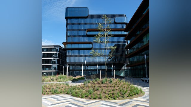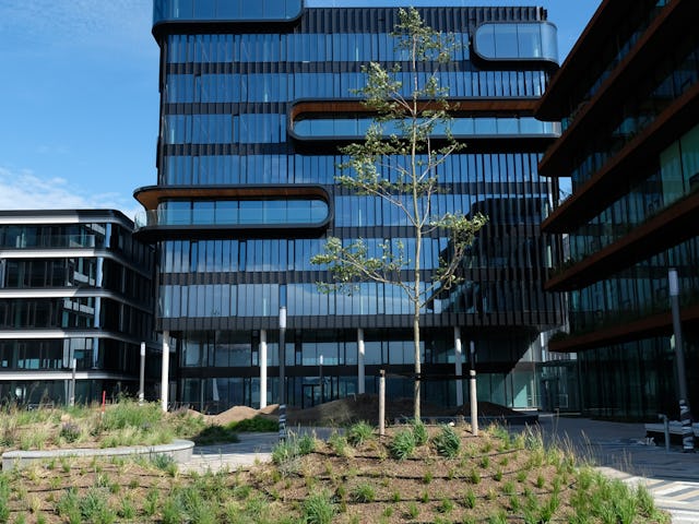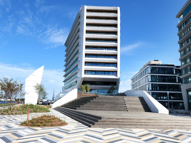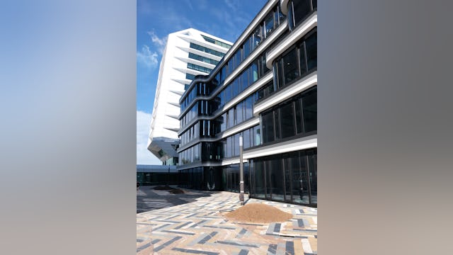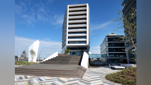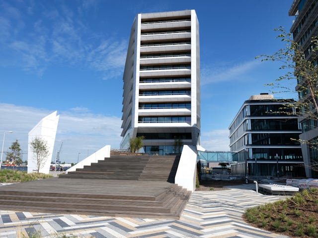 PVH Europe HQ (https://mvsa-architects.com/project/projects-pvh-europe-hq-offices/) is het eerste gebouw en het fundament van de campus. Hierin is het Europese hoofdkwartier van Calvin Klein en Tommy Hilfiger is gevestigd. Dit 12 verdiepingen hoge gebouw heeft de langgerekte lijnen en glanzende afwerking van een luxe jacht. De hoogte en de iconische vorm van het gebouw verlenen aan de campus herkenbare aanwezigheid, identiteit en karakter.