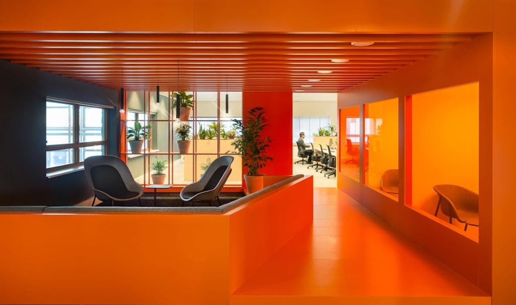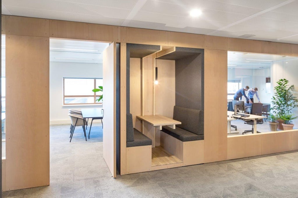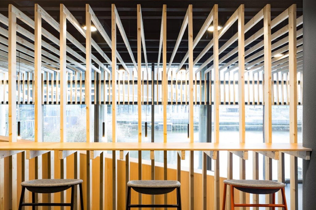 Het duurzame en circulaire interieur van Stadsdeelkantoor Buikslotermeerplein is eenvoudig en eerlijk. Het past perfect bij het stoere, ongegronde Amsterdam-Noord gevoel. "We zijn geïnspireerd door het unieke karakter van Amsterdam-Noord waar 'Maken' centraal staat", aldus architect Daniël Peters. “Waar mensen vroeger op de scheepswerven werkten, experimenteren ze nu met stadslandbouw en het 3D-printen van huizen en bruggen. Die initiatieven hebben Amsterdam-Noord op de kaart gezet.” Met basismiddelen als constructiehout, primer, gerecyclede PET-flessen en veel planten creëerde DAMAST een inspirerende werkomgeving.