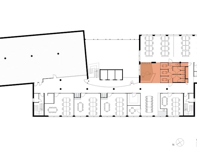 Met tal van initiatieven en experimenten vormt het gebouw het facilitere hart van alle nieuwe ontwikkelingen in de wijk. Duidelijke routes en zichtlijnen zorgen voor een rustige en comfortabele werkomgeving met een verscheidenheid aan plekken. De superflexzone bevat comfortabel uitgeruste werk- en loungeruimtes en flexibele ruimtes voor projectmatig werken. Het restaurant is een Plaza, waar men zich thuis voelt en ook kan vergaderen. DAMAST is erin geslaagd om met minimale middelen een uitnodigende werklocatie en visitekaartje in één te creëren.