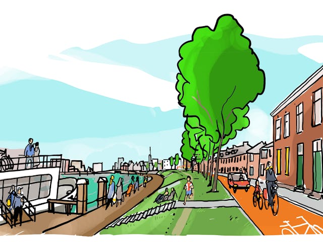 - Zuiddijk: De Zuiddijk wordt in 2040 weer herkenbaar als dijk. In de plannen wordt de karakteristieke bebouwing zoveel mogelijk behouden. In de plinten op de route vanaf de Burcht tot aan de Schubertstraat komen winkels, horeca of maatschappelijke organisaties met daarboven plek om te wonen.
