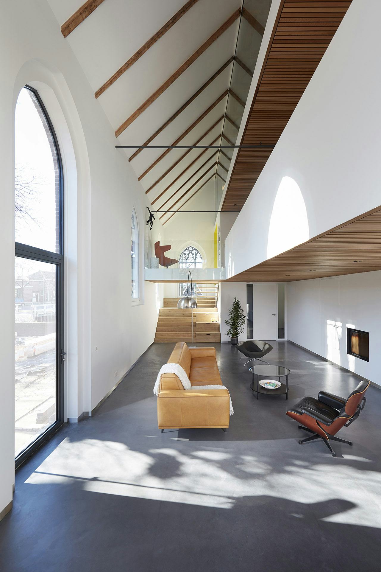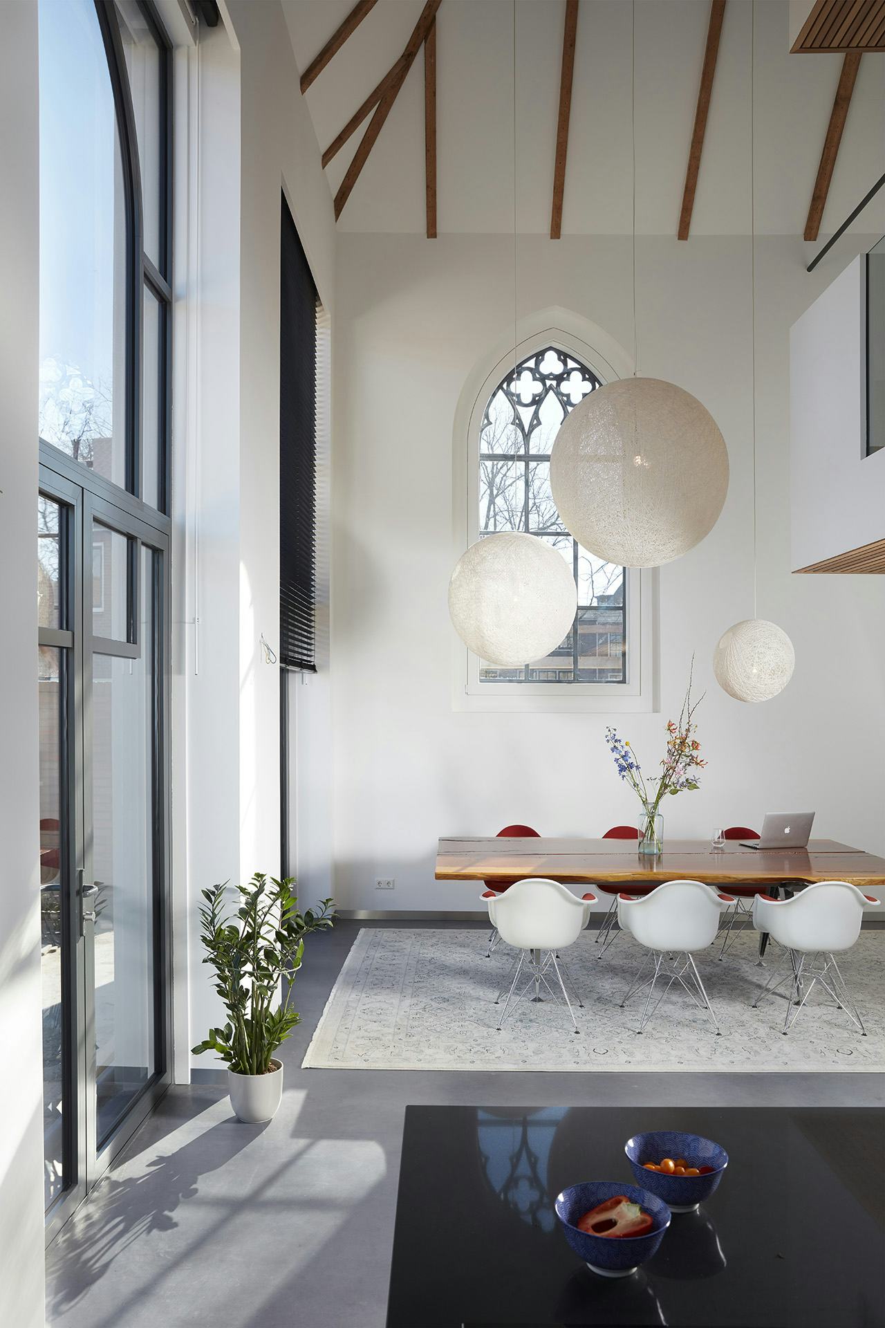 De woning kan in zijn eigen energie voorzien. We gebruiken een geothermische bron voor verwarming en koeling en op het dak van de nieuwe garage hebben we zonnepanelen geplaatst. Qua circulariteit hebben we materialen geoogst uit de kerk en deze hergebruikt. Als voorbeeld; de houten lamellen van het kerkplafond zijn hergebruikt voor de nieuwe plafonds.