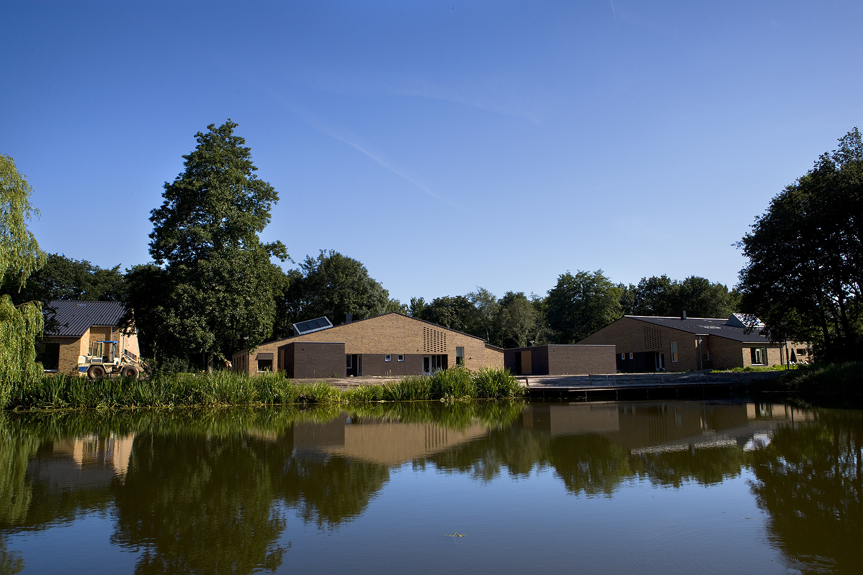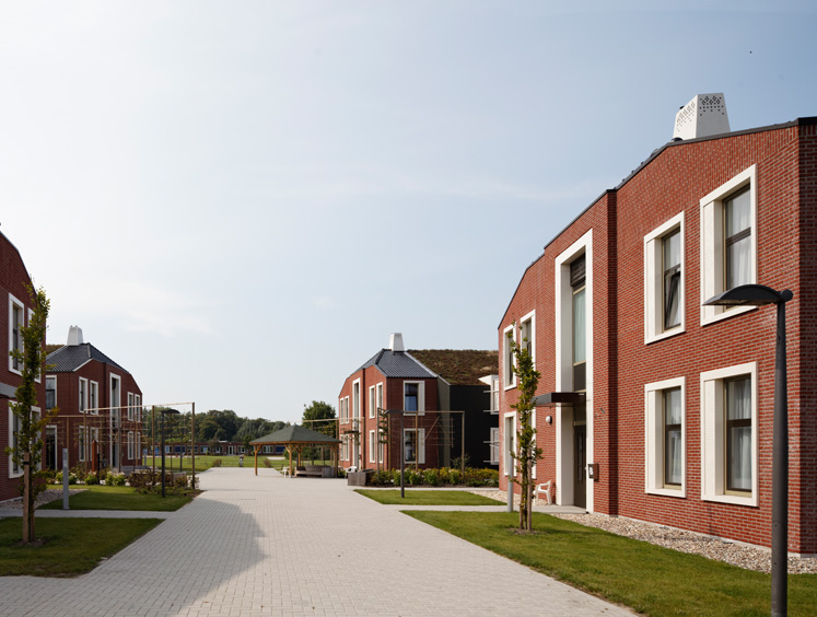 De 14 zorgwoningen die DAAD architecten heeft gerealiseerd in Nieuw Woelwijck, een zelfstandige dorpsgemeenschap van bewoners met een verstandelijke beperking, vormen een nieuwe eenheid met de oorspronkelijk bebouwing uit de jaren '70. De woningen liggen in vier clusters rondom het voorzieningenhart en zijn elk ingebed in een specifiek landschap.