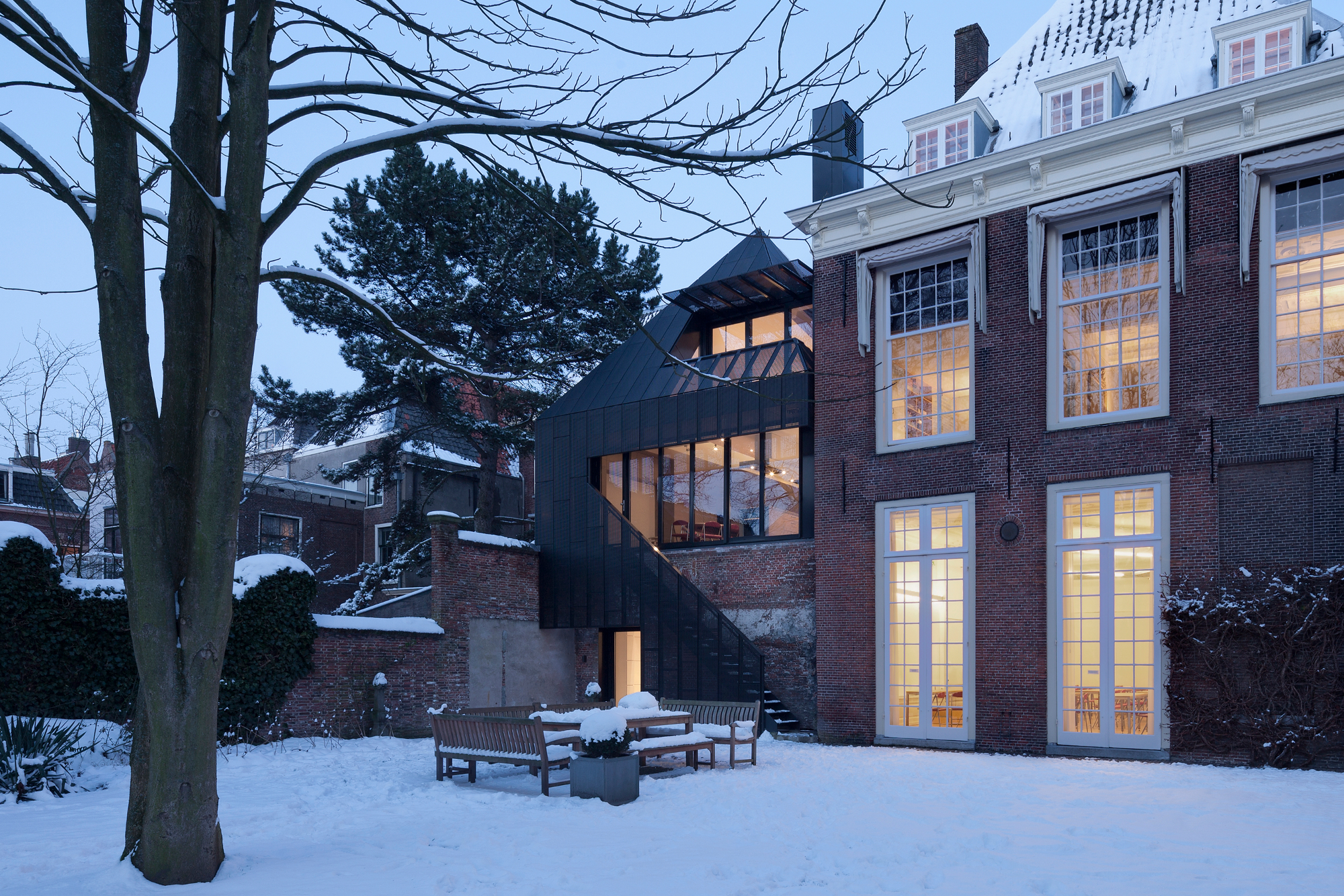 De opdracht was om de bestaande uitbouw aan een monumentaal pand te renoveren, maar uiteindelijk is deze door Leo Harders Architecten vrijwel helemaal vernieuwd. Alleen de zijwanden en een deel van het dak zijn hergebruikt.