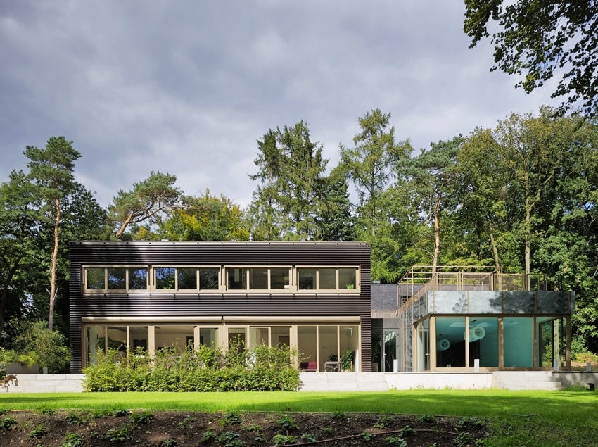 Luxe en uiterst duurzame villa met inpandig zwembad in de bossen van Nijmegen, ontworpen in opdracht van een particuliere opdrachtgever (en zijn katten).
