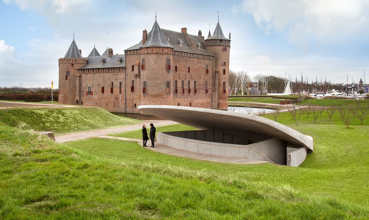 Het Muiderslot is één van de belangrijkste culturele erfgoederen van Nederland. In het slot wordt het verhaal verteld van Floris V die het slot in 1285 liet bouwen en van P.C. Hooft. Maar het verhaal van de plék is minstens zo interessant, een verhaal van zeven eeuwen waterdefensie. Dit wordt vanaf april 2012 verteld in Het Waterschild, ontworpen door buro3 architecten.