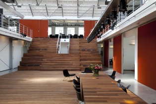 Voor Roorda Reclamebureau ontwerpt Concern in een oude industriehal in Amsterdam een no-nonsense interieur. De essentie van het ontwerp, in deze hal van 1250 m2 met shedkappen en vide, is een houten 'loper' die van de entree door de hal loopt en vervolgens als trap omhoog slingert tot in de boardroom.