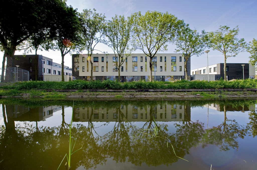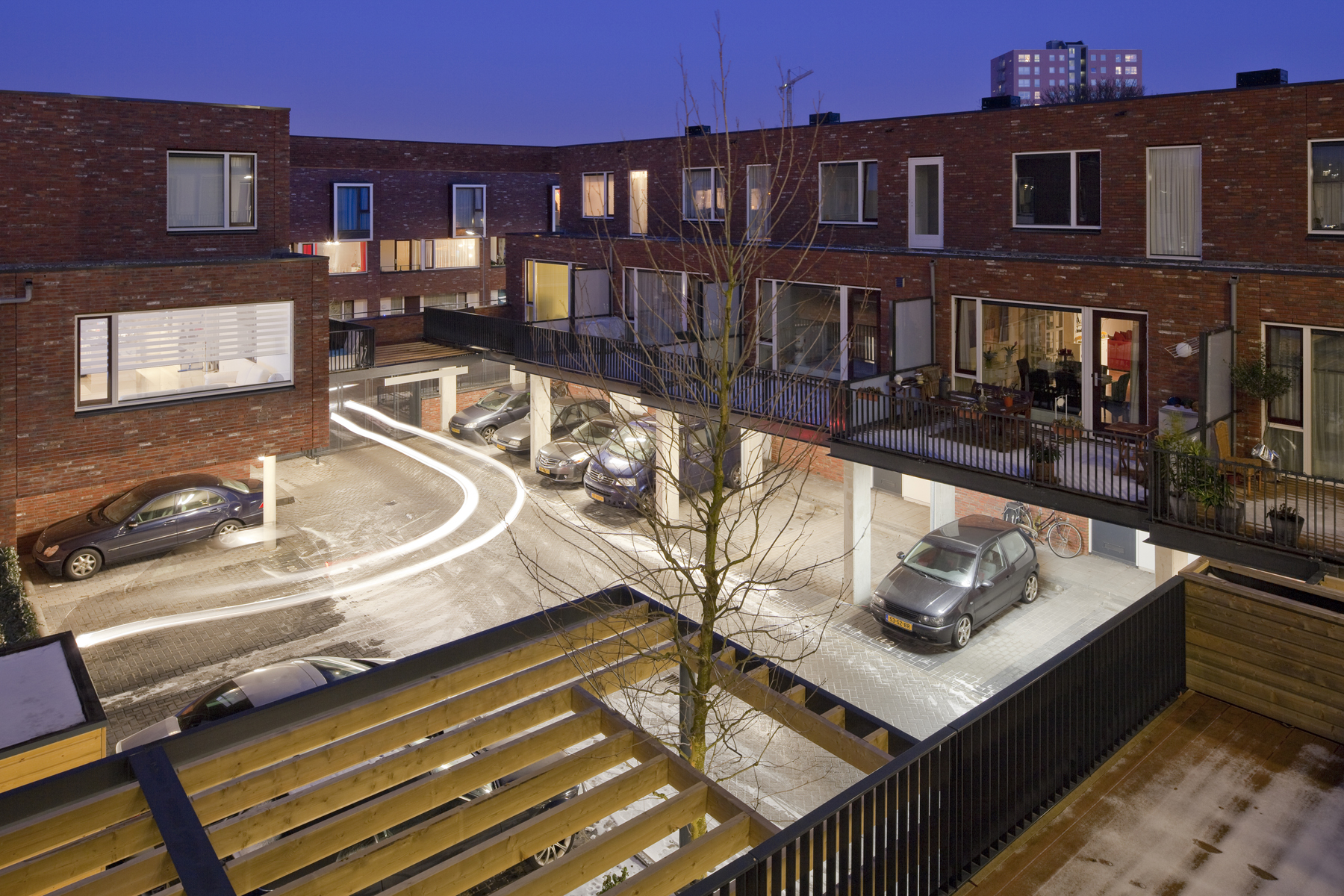 Op een verborgen kavel tussen muren van achtertuinen en een openbare parkeerplaats ligt een moderne villa. De rafelige kavelvorm van een voormalige tegelhandelaar heeft een smalle entree tussen twee bouwblokken in en is volledig onzichtbaar vanaf de openbare weg. Door de wieber-vormige plattegrond van de villa ontstaan ruimtelijk lange perspectieven, waardoor de buitenruimte wordt geoptimaliseerd.