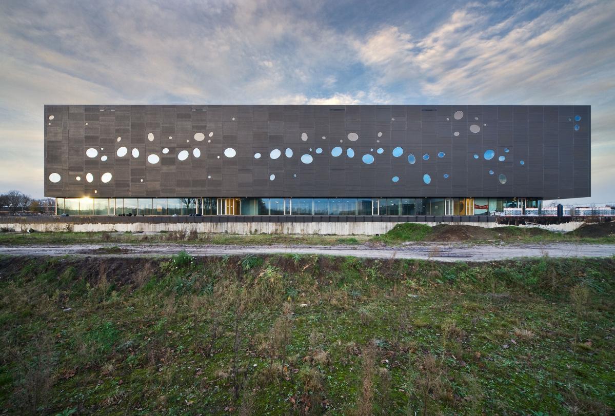 Door Marieke van Ouwekerk - Het parkachtige gebied op het Funenterrein in Amsterdam is door een L-vormig bouwblok afgescheiden van spoor en Cruquiuskade. Hier zijn ondertussen zestien kleine complexen verrezen, die variëren in hoogte van negen tot achttien meter. Het idee van NL Architects voor Blok K is aantrekkelijk simpel; de uitwerking is echter verre van eenvoudig.