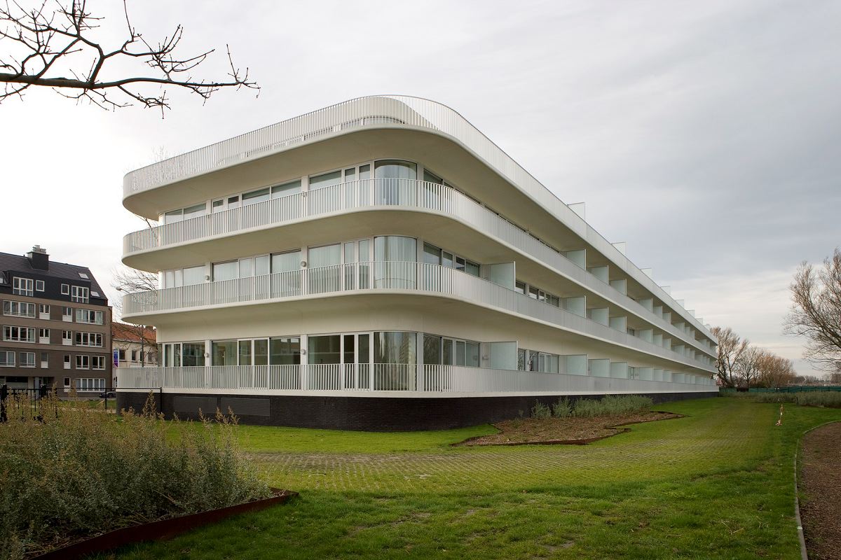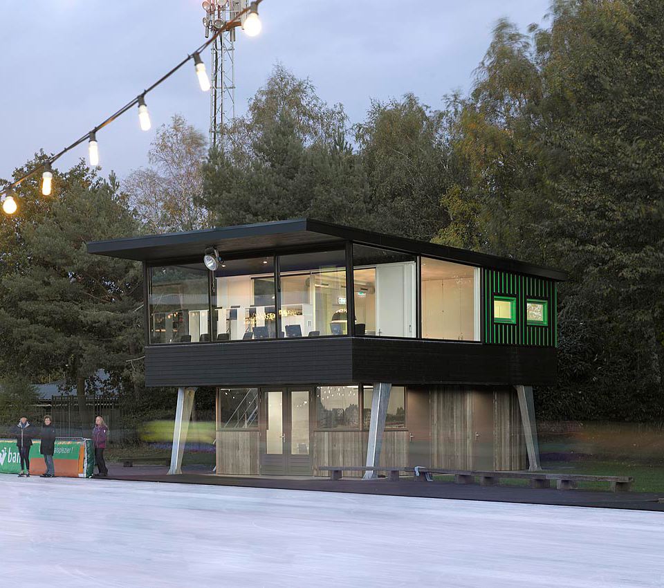De nieuwe vestiging van restaurant Maxime in Delft heeft een bijzondere relatie met de stad. De gevels en het dak zijn bekleed met lamellen van naturel geolied purperhart die de relatie tussen interieur en omgeving door een subtiel filter halen. Overdag trekt de bijzondere detaillering de aandacht, terwijl het volume 's avonds een bijzonder licht verspreidt.