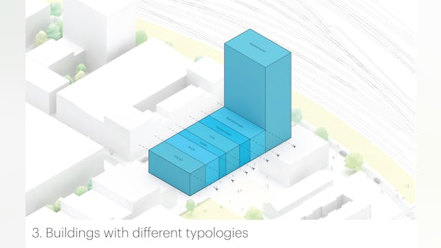 'De Oosterlingen’ is een ensemble van zeven zeer duurzame woongebouwen, ontworpen voor projectontwikkelaar Being. De opdracht was om een nieuwe, markante entree voor het Oostenburg-eiland te ontwerpen. In MVRDV’s ontwerp vormen ‘De Oosterlingen’ een duidelijke familie, terwijl elk individueel gebouw anders is: van toren tot laagbouw, met een eigen dakopbouw en gevels van hout, glas, gerecyclede baksteen, biobased composiet of rammed earth.