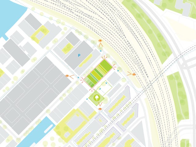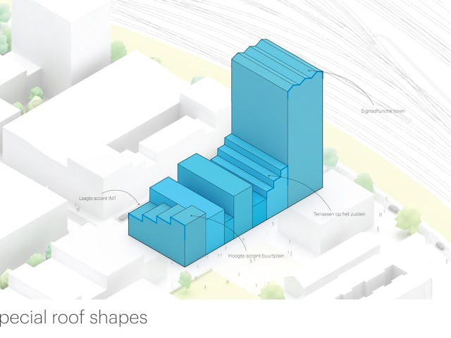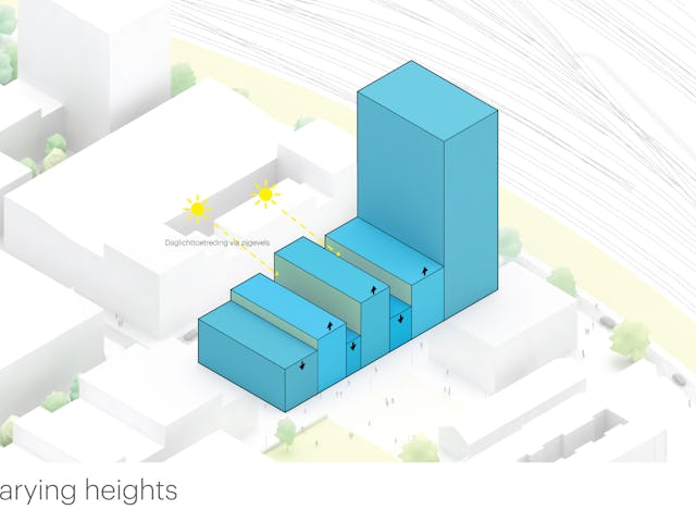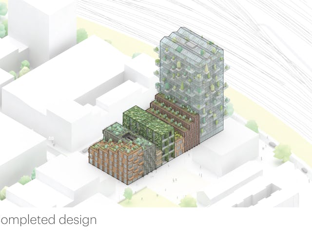 Het project komt op de kop van het eiland, naast het Buurtplein. Vastgoedontwikkelaar Being en de Amsterdamse woningcorporatie Stadgenoot wilden een humaan, groen en gezichtsbepalende verzameling van gebouwen die samen een markante entree voor de wijk zouden vormen.