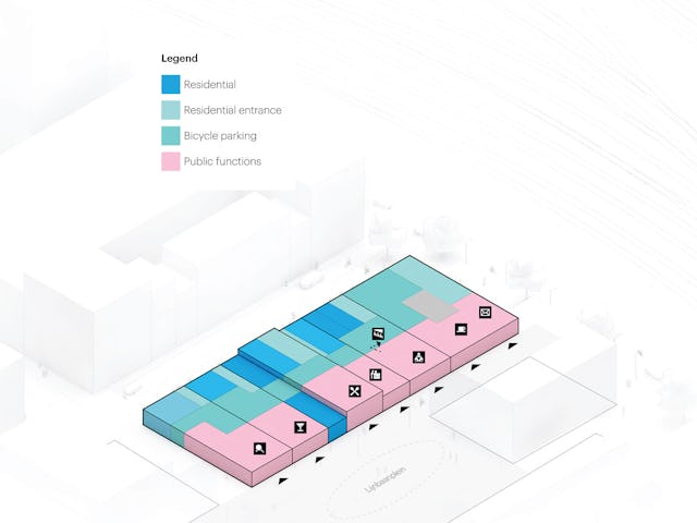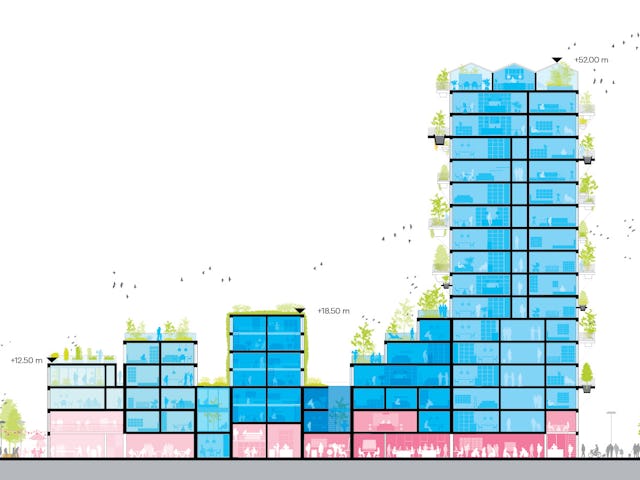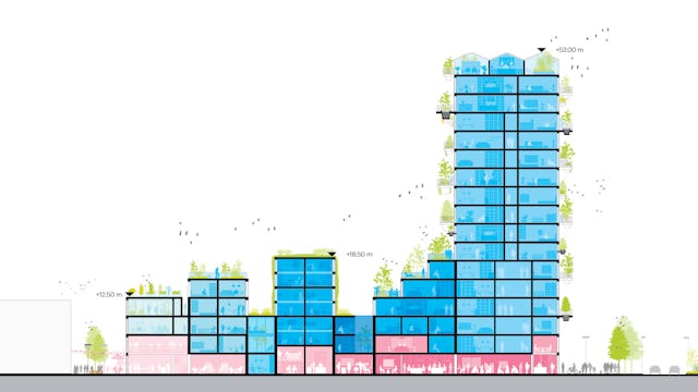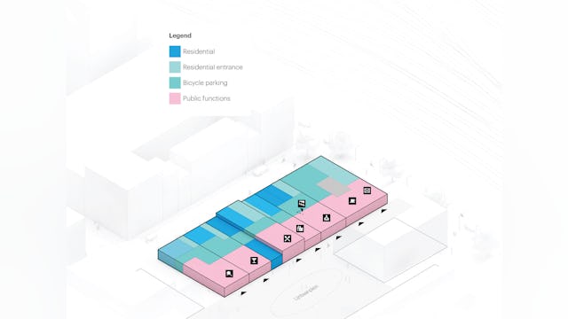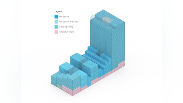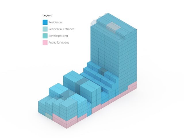 De gebouwen tellen samen 13.950 m2 en 144 appartementen die geschikt zijn voor verschillende doelgroepen. Het ontwerp doet denken aan een verzameling grachtenpanden maar ook aan een streepjescode, verwijzend naar een van de vroegere MVRDV-projecten.