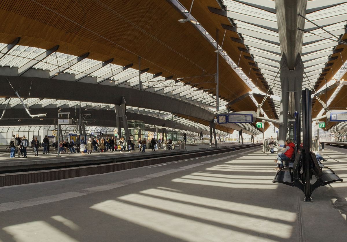De beweging en snelheid van treinen die voorbijrazen bepalen tot in detail het expressieve uiterlijk van het nieuwe Station Amsterdam Bijlmer ArenA. Scheve kolommen, scherpe dakpunten, alles lijkt met de vaart van de treinen te worden meegezogen. Voor het ontwerp van de overkapping liet architectencombinatie Arcadis en Grimshaw zich inspireren door het skelet van een prehistorisch reuzeninsect die het gewelfde dak op dunne poten hoog boven de perrons uit tilt.