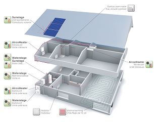 Green Hybrid Heating combineert lucht-water-warmtepompen met zonnecollectoren. Het systeem maakt de gasketel overbodig waardoor het verbruik van primaire energie drastisch vermindert.
