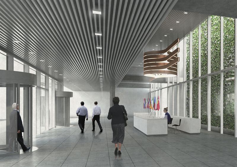 Een zwevende houten sculptuur wordt het centrale middelpunt bij de ingang van het nieuwe hoofdkantoor van het Internationaal Strafhof in Den Haag. De Deense kunstenaar Eske Rex ontwierp een krachtig, iconisch werk voor het ontwerp van Schmidt, Hamer en Lassen Architects. De geplande oplevering is in december 2015.