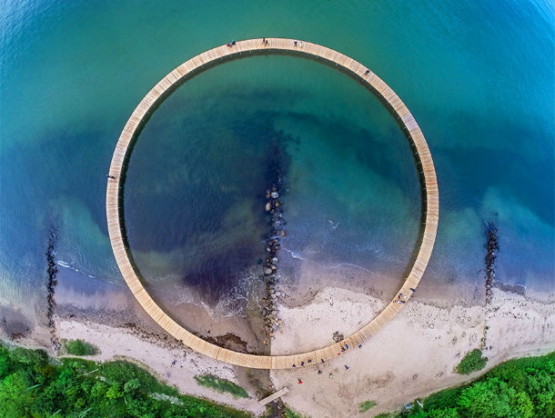 Nog inspiratie nodig voor vakantiebestemmingen? de Architect heeft wat tips voor architecten op zoek naar bijzondere gebouwen, locaties of evenementen. Vandaag de eerste vakantietip: een brug zonder begin of eind, die uitnodigt tot wandelen en mijmeren in het bijzondere kustlandschap rond Aarhus, Denemarken. Wandelaars kunnen vanaf de brug het landschap en de stad bekijken als een "eindeloze panoramische compositie", aldus gjøde & povlsgaard arkitekter.