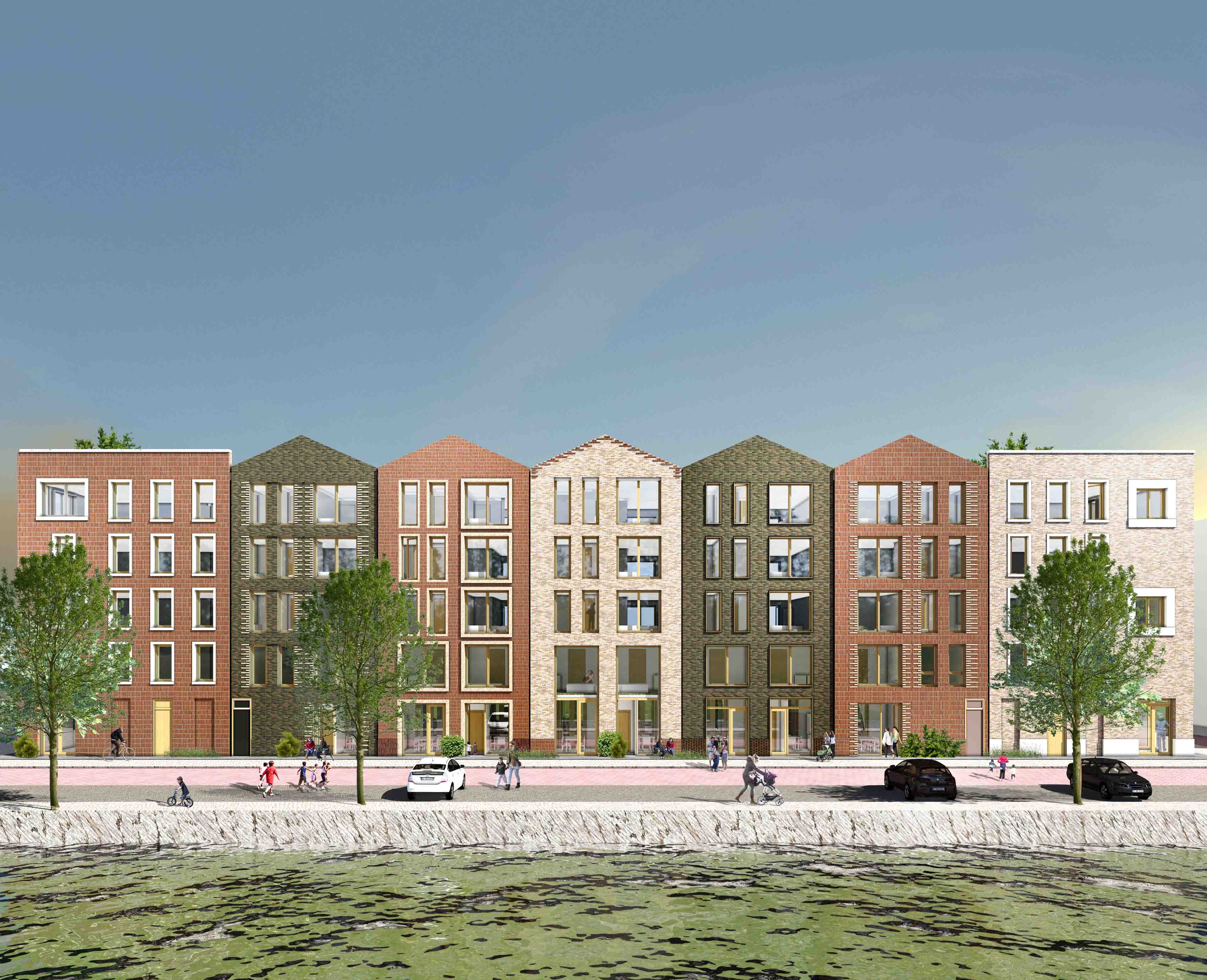 In de Amsterdamse Houthaven komen 38 eengezinsappartementen. Heren 5 Architecten won de door Woonstichting De Key uitgeschrijven prijsvraag.