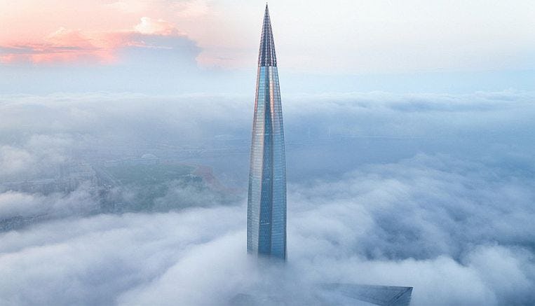 De Federatietoren in Moskou is de titel van hoogste wolkenkrabber van Europa kwijt. Die eer is vanaf nu voor het Lakhta Center in Sint-Petersburg. Met 462 meter is de toren tevens de dertiende hoogste wolkenkrabber ter wereld. Het ontwerp is van Philip Nikandrov die de toren laat draaien waardoor het onderkomen van Gazprom op het logo van de multinational lijkt.
