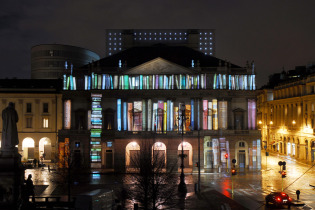 Tot 25 december is het operagebouw La Scala in Milaan het doek voor een voorstelling die op haar voorgevel wordt geprojecteerd. Kunstenaar Mario Nanni maakte een theatrale film die aftelt naar eerste kerstdag. 'La luce della musica' die vanaf 7 december te zien is, is elke dag anders: details veranderen en de kerstster verplaatst zich langzaam over het firmament. Alles bouwt toe naar kerstavond, waarop de ster explodeert in een zee van licht en toeschouwer en voorstelling met elkaar vermengt.