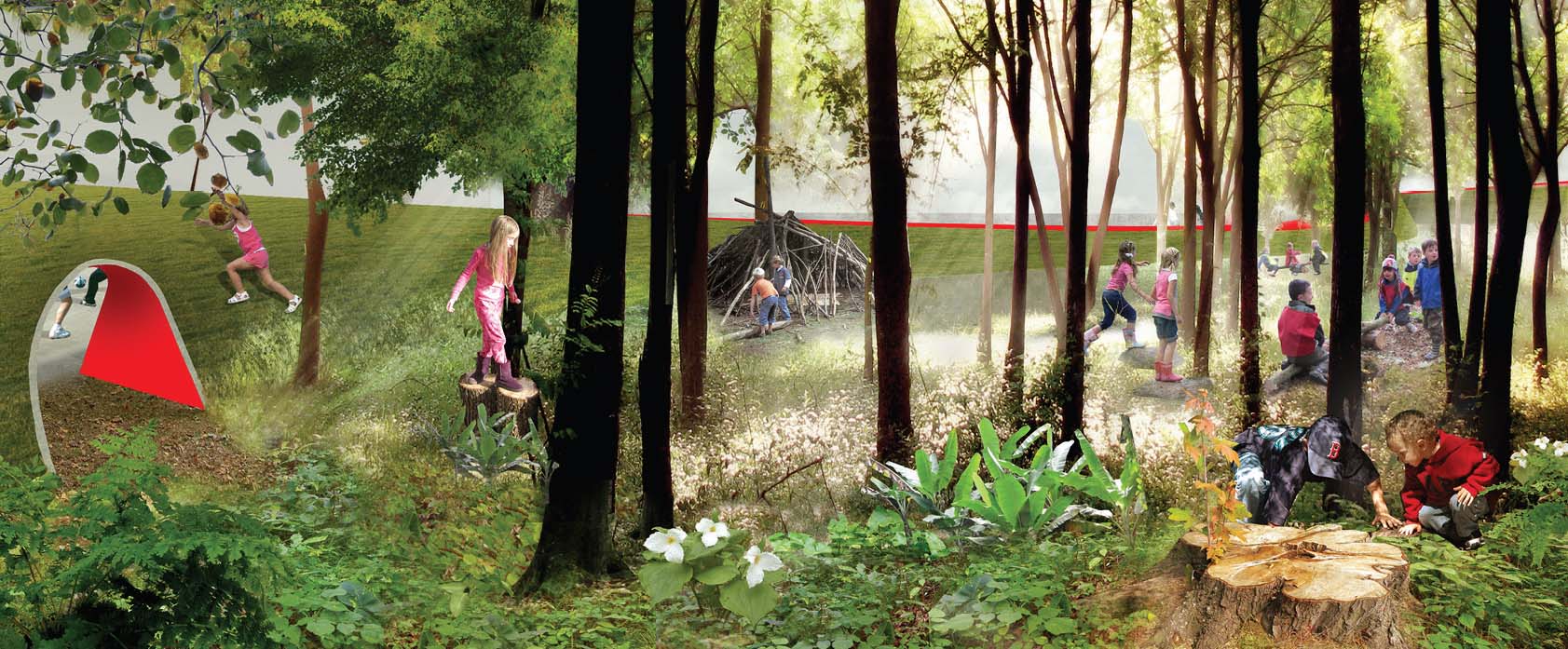 Met het ontwerp 'Into the Wild' zijn het Amsterdamse architectenbureau Dmau en het Rotterdamse Openfabric de winnaars van de prijsvraag Duurzame Playground van de Richard Krajicek Foundation.