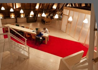 Op de verdieping eronder trekken passagiers een sprintje om de trein nog net te halen en roept een mevrouw met een vriendelijke stem alle vertragingen om. Maar de verdieping erboven is er plaats voor stilte, overleg en werken. De bovenverdieping van het huidige Delftse stationgebouw fungeert de komende jaren als flexibel kantoor-, workshop-, en tentoonstellingsruimte voor Werkplaats Spoorzone Delft. Het interieur is ontworpen door Smartchitecture.nl.