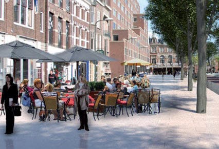 De entree van station Hollands Spoor in Den Haag wordt grondig vernieuwd. Vorige week presenteerde de gemeente een schetsontwerp van de metamorfose. De entree voor het station en het brede deel van de Stationsweg krijgt een natuurstenen vloer, die als een 'rode loper' de voetganger richting de binnenstad leidt.