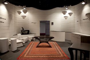 Een van de Scandinavische exposanten op de IMM in Keulen was het Finse merk Punkalive. Niet alleen toonden zij flink wat nieuwe ontwerpen, ook bouwden zij een fraai golvend en licht mini-paviljoen van Kerto. Alle producten en ook de stand zijn vervaardigd van dit restproduct dat Finnforest, hun landgenoten, produceren.