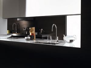Met de Water Dispensers presenteert kranenfabrikant Dornbracht zogenaamde 'convenience'-producten voor de series Tara Ultra en Lot: een nieuw systeem met kraan, waterfilter en heetwatertank. Met één druk op de hendel leveren de Water Dispensers onmiddellijk kokend heet water (93°C).