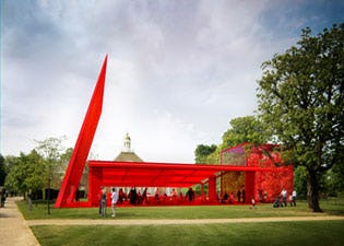 In het 40e jubileumjaar van de Serpentine Gallery maakt de Franse architect Jean Nouvel het paviljoen van dit jaar. Het paviljoen is het tiende in de reeks en wordt in rood, de kleur van de Britse telefooncellen, brievenbussen en Londense bussen uitgevoerd. Serpentine Gallery Pavilion 2010 by Jean Nouvel from O Production Ltd. on Vimeo.