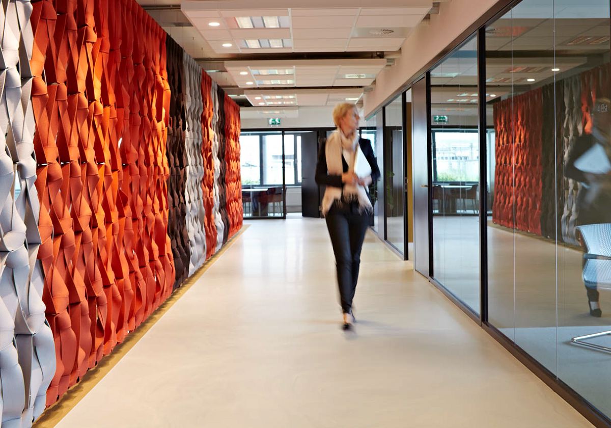 In het nieuwe adviescentrum van de Rabobank in Elst worden de spreekkamers en de ruimte voor seminars door de room divider Knot van elkaar gescheiden. Zenber Interieur Architectuur ontwierp met Knot een kleurrijk en zacht element in het stoere, industriële gebouw. De kleuren zijn afgestemd op het interieurontwerp en vormen samen een gastvrij en tactiel interieur.