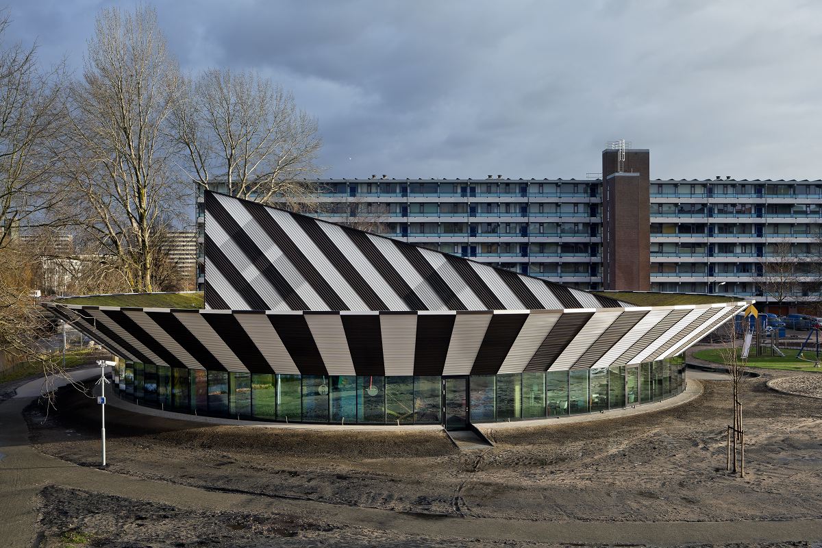 Het buurthuis Panorama bevindt zich in een alzijdig, rond en uitnodigend paviljoen in het groen in plaats van een gesloten gebouw, zoals volgens Marlies Rohmer vaak het geval is. De ronde vorm benadrukt het autonome karakter van het gebouw tussen de flats uit de jaren zestig. Het omringende grasveld loopt zo'n dertig centimeter omhoog, waardoor het paviljoen in de grond lijkt te zakken.